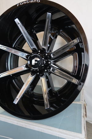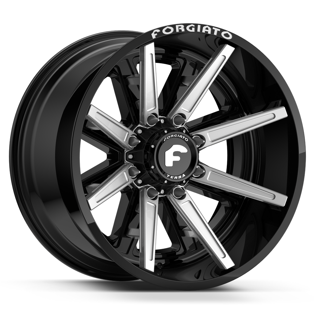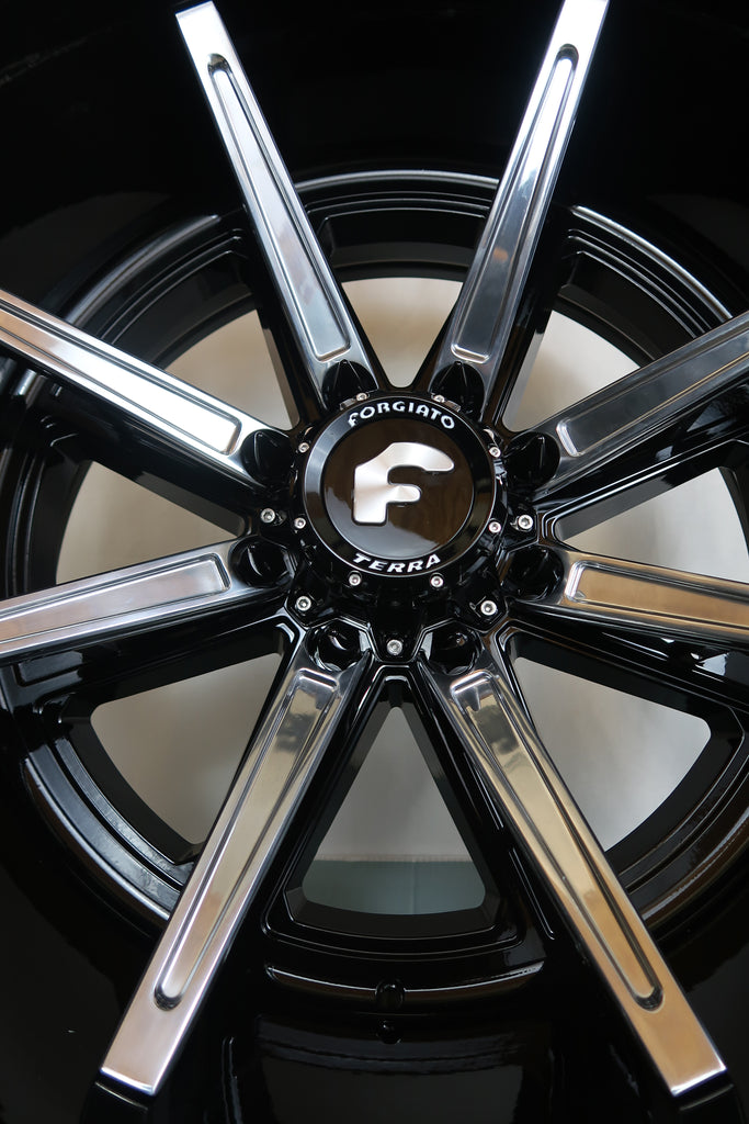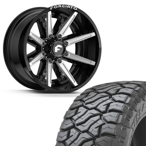 SET OF 4 FORGIATO FLOW TERRA 005 24x14/24x12 6x139.7(6x5.5) OFFROAD BLACK/MILLED WITH VENOM POWER TERRA HUNTER R/T 35X12.50R24 BLK.